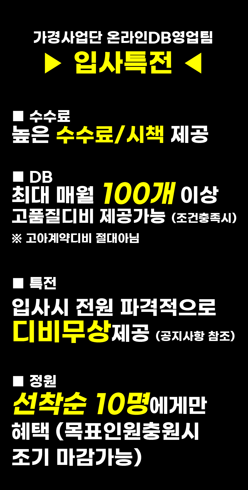 ※ 질 좋은 디비를 고능률 계약으로 성사시킬 팀원을 모집합니다.